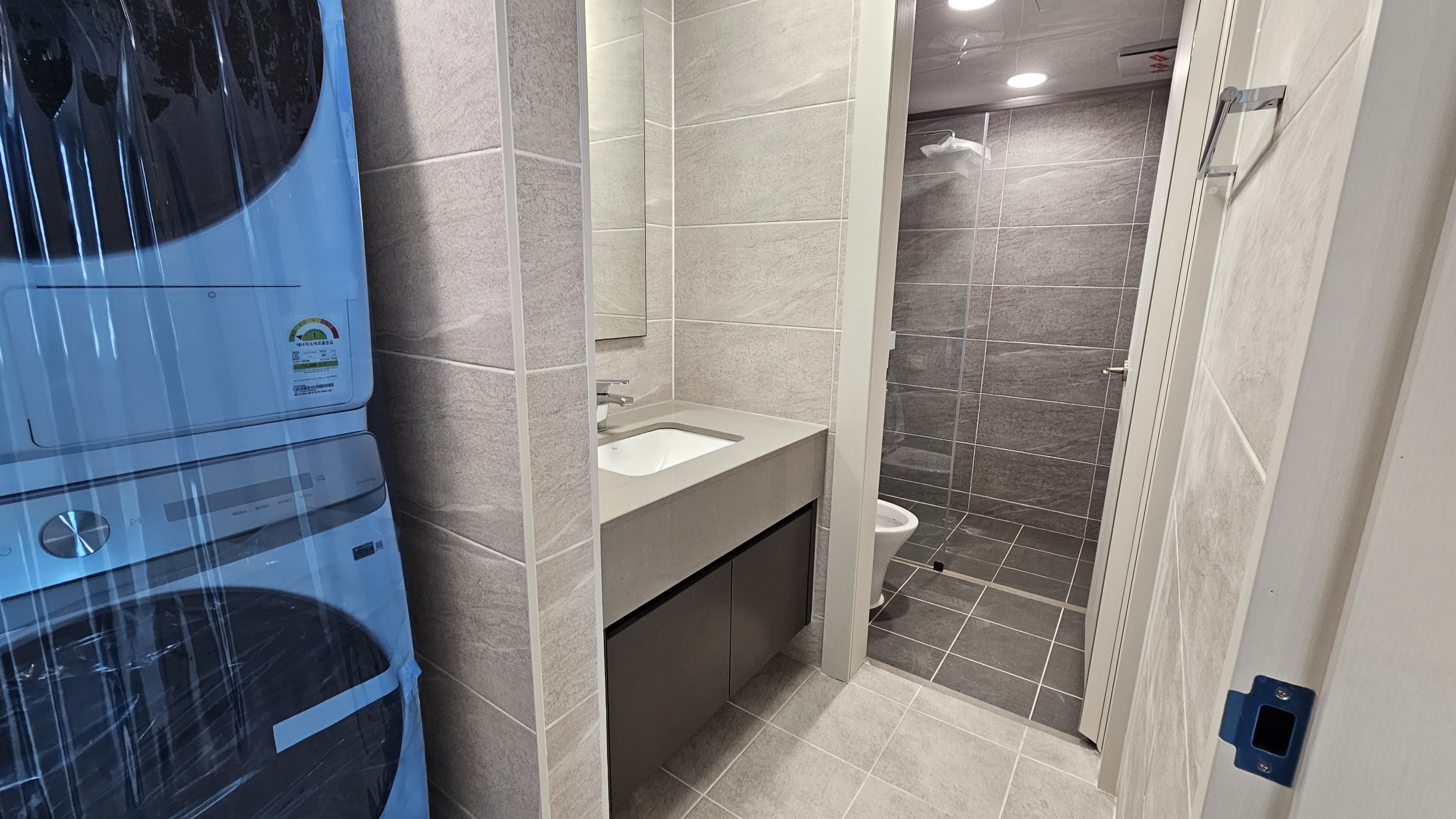 무상옵션으로 삼성 그랑데 세탁기와 건조기가 제공되는 욕실에는