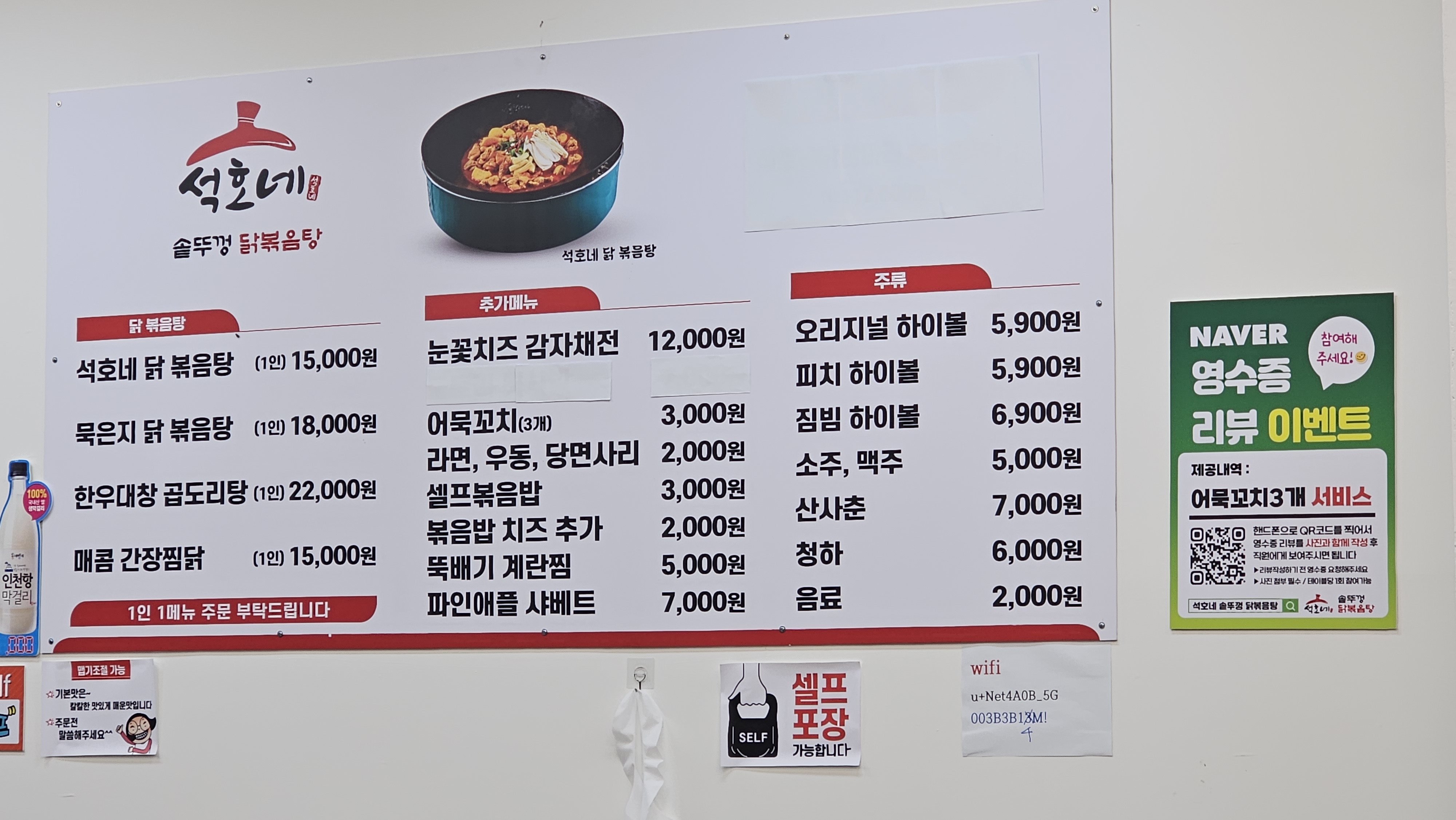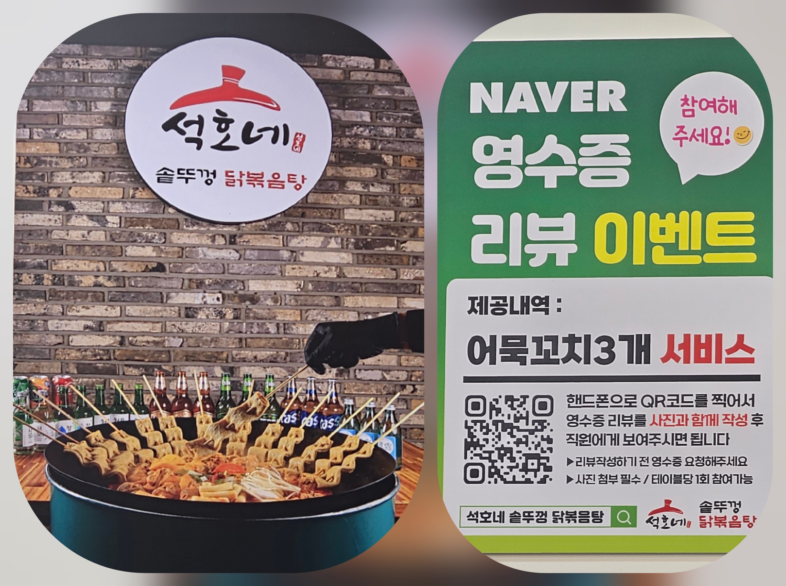 sns에 석호네 솥뚜껑 닭볶음탕 공유하면서 영수증 리뷰를 작성하면