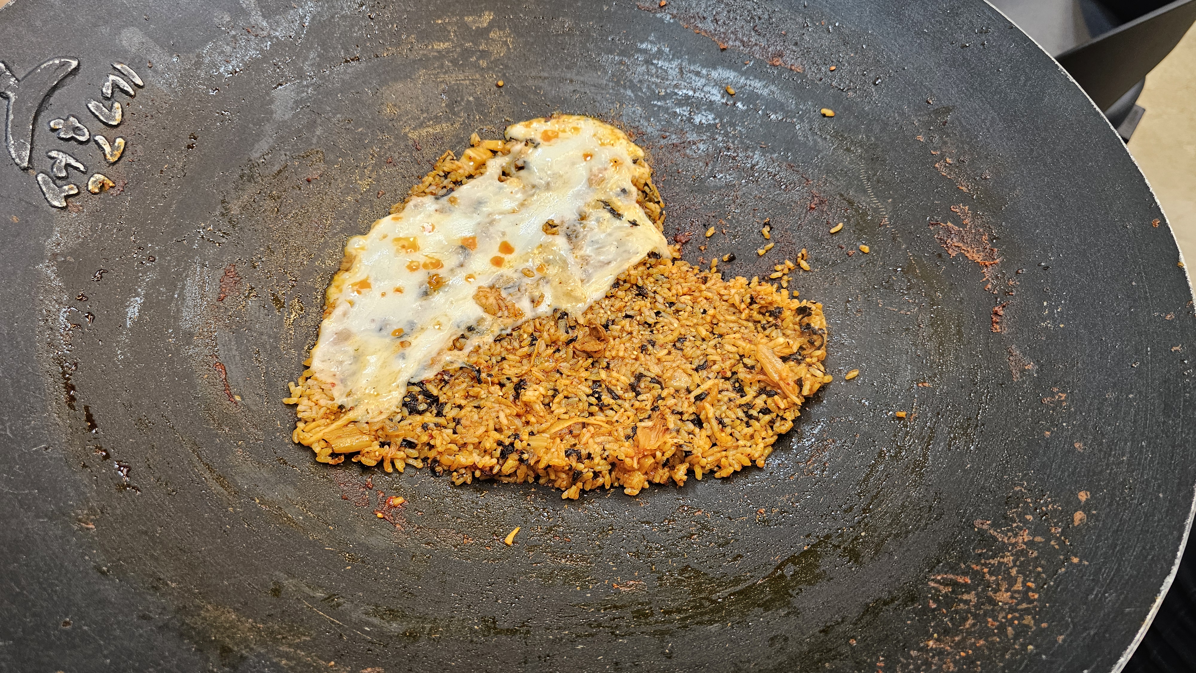 지인인 사장님이 직접 이렇게 하트 모양의 치즈 볶음밥을 만들어주니