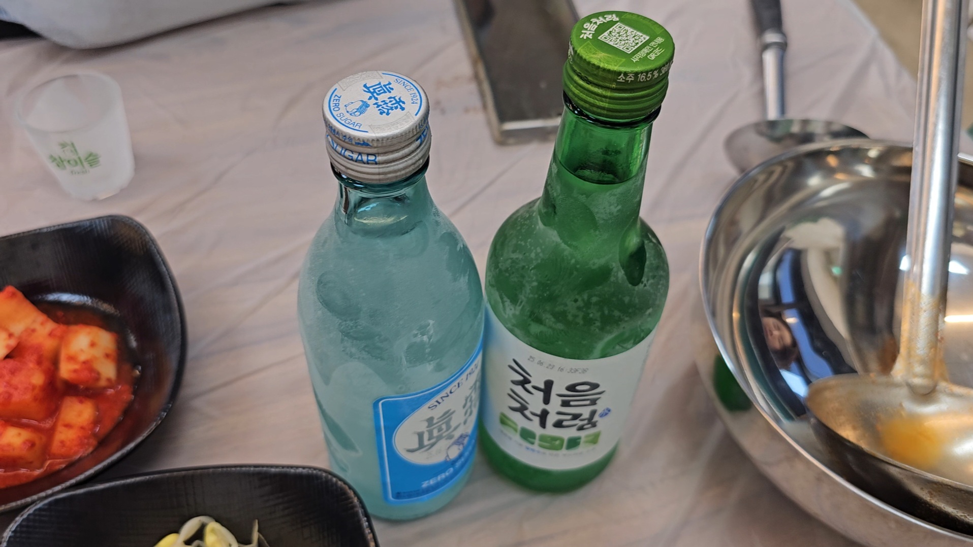 저와 여자친구는 처음처럼 이고 제 친구는 진로이즈백 이고 해서 각각 1병씩 주문했는데