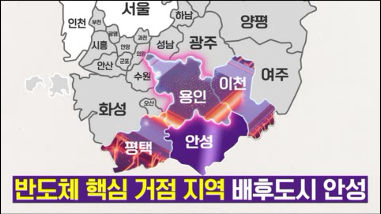 우리나라에서 반도체 하면 떠오르는 반도체의 도시 세곳이 안성씨를 감싸고 있는 모습입니다