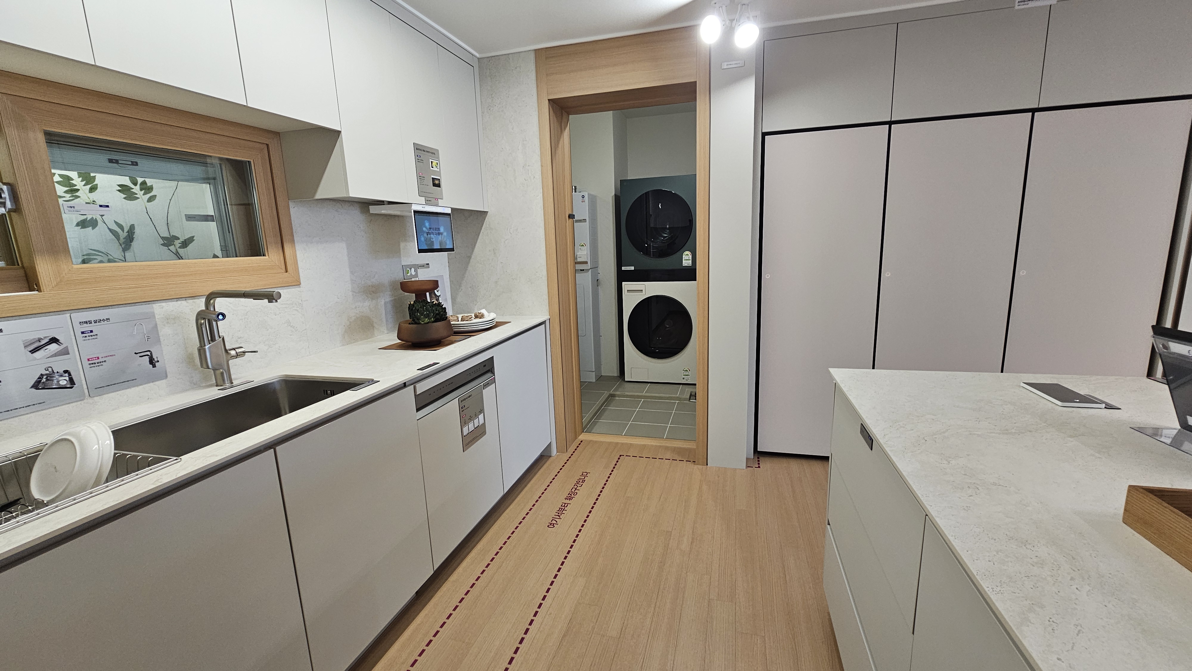 그리고 주방 옆으로는 세탁기와 건조기를 사용할 수 있는 넓은 다용도실이 있어서 동선이 편리합니다
