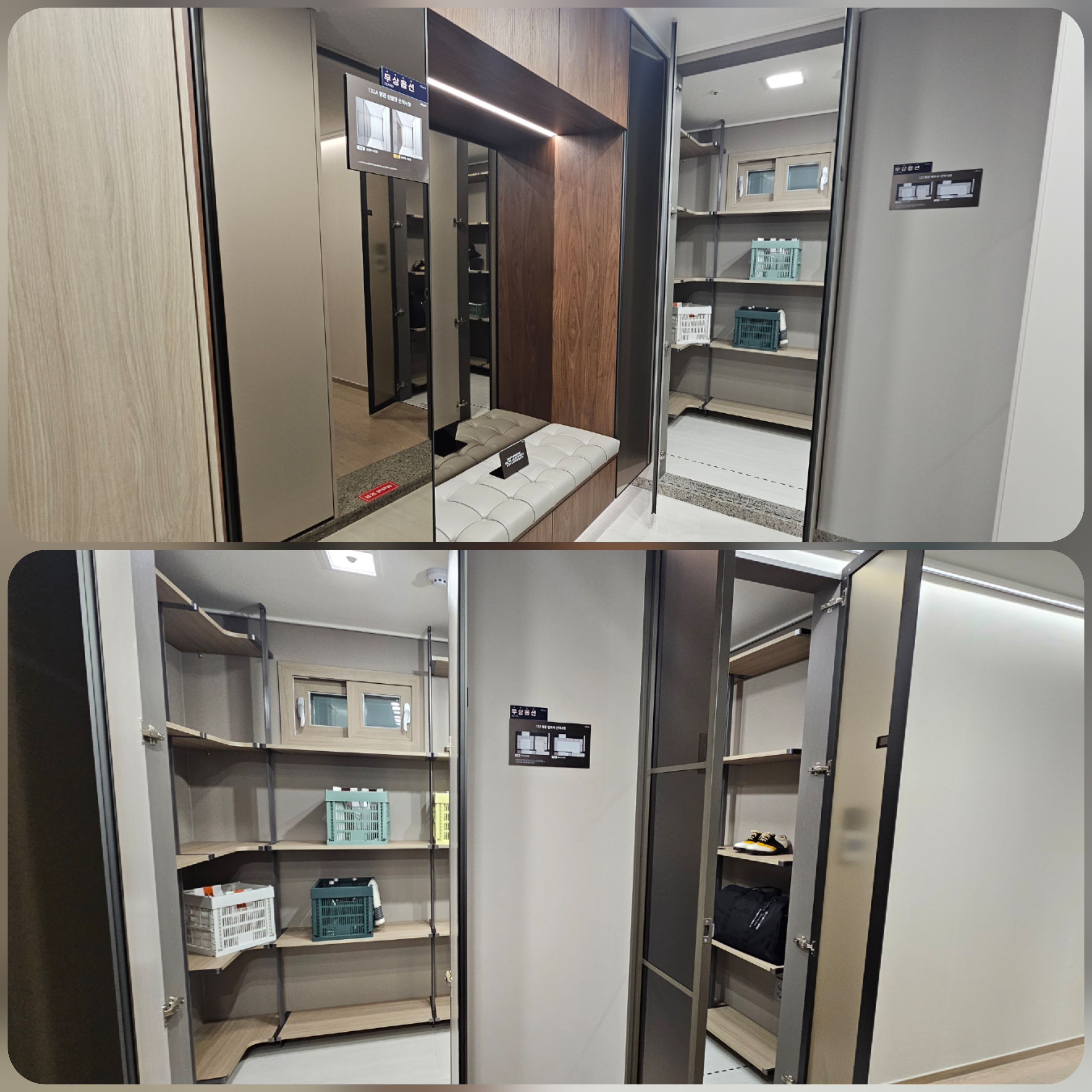 사진처럼 파우더룸과 시스템 선반 그리고 중문까지